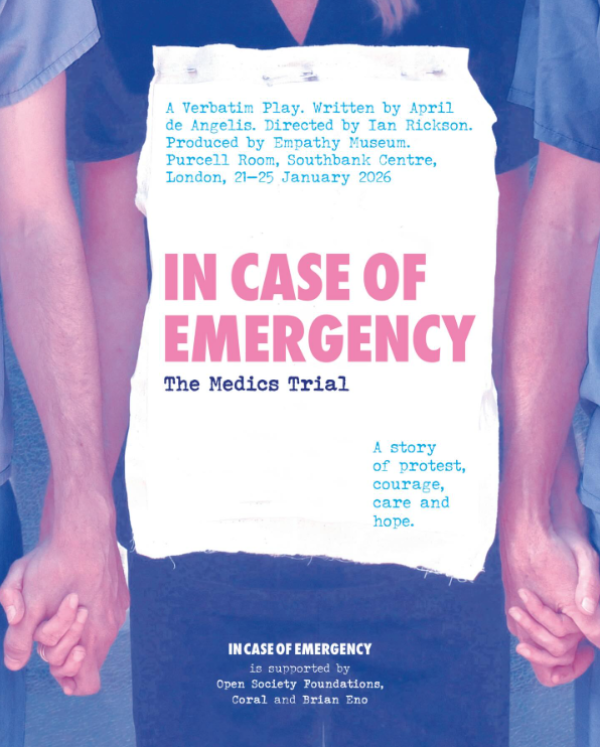 At the beginning of this year, Southbank Theatre hosted a one-week run of In Case of Emergency, a new theatrical work by award-winning Director Ian Rickson. Based entirely on verbatim transcripts of real Court proceedings, In Case of Emergency detailed the story of six medics who were tried for damaging the windows of JP Morgan in protest against their fossil fuel investments. Exploring the medics’ defence - that they took “minimal intervention” to avoid harm - the play worked as both a legal drama and an ethical case study – as the clinicians attempted to explain their duty to protect life within a system that criminalised their efforts.